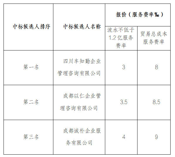 巴中俊佑工程項目管理有限公司融資咨詢服務采購項目詢價采購于2025年12月22日舉行,現(xiàn)將中標候選人名單公示如下: